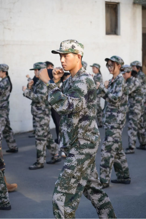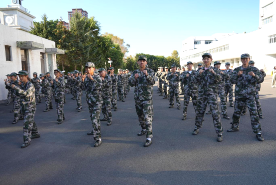 “军体拳!格斗准备!”挥拳,踢腿,一招一式都充满豪气与力量。军体拳的练习不仅是对体能的挑战,更是对意志的磨砺。拳势流转,每一次挥拳都更加坚定、更加自如!
