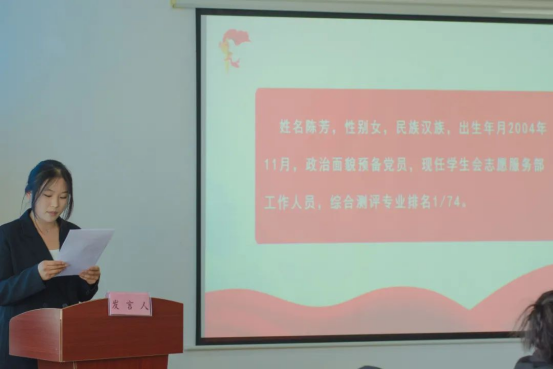 新一届学生会主席团候选人依次上台发表演讲,随后学生代表们进行投票选举。