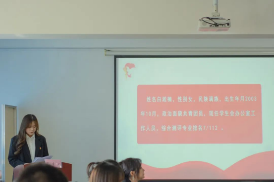 各学生代表以无记名投票的方式对三位候选人进行了投票选举,共选出三位新一届主席团成员,分别是白淞楠、陈芳、王熠迪。