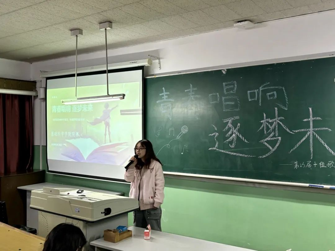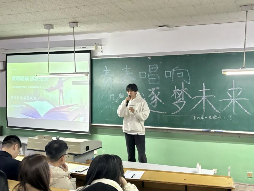 青春如歌,梦想启航!为展现青年学生的艺术风采,基础科学学院举办的“青春唱响 逐梦未来”校园十佳歌手大赛初赛在B04-2313教室激情开唱。八位参赛选手以歌声为笔,绘制出属于青春的旋律篇章,跳动的音符与澎湃的活力相互交融,为春意盎然的校园注入了源源不断的生机与活力。