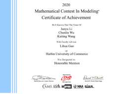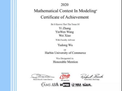 2020年美国大学生数学建模竞赛成绩于近日发布。疫情当前,在校教务处、计算机与信息工程学院等部门的大力支持下,基础科学学院克服重重困难,在线上组织了24支参赛队参加本次竞赛,喜获2020年美国大学生数学建模竞赛国际一等奖1项(王勇老师指导),国际二等奖4项(吴玉东、张敬信、罗志坤、郭丽华老师指导),成功参赛奖12项。其中,数学18级学生牛浩获国际一等奖,数学17级学生张祎获国际二等奖。