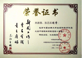 全国大学生经济新闻作品大赛每两年一届,由中国经济传媒协会、中国新闻史学会应用新闻传播学研究委员会、北京工商大学共同主办。本次大赛由中国经济传媒协会会长赵健、中央广播电视总台云听副总编辑张显峰、中国银行保险报执行总编辑李俊岭、经济观察报执行总编辑文钊等多位专家组成评委会,对来自全国高校的400余篇参赛作品进行严格公正的评选,最终评选出新闻报道一等奖4名,二等奖9名,三等奖14名;评论一等奖1名,二等奖1名,三等奖1名。