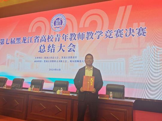 4月19日至21日,由黑龙江省总工会、省教育厅主办,黑龙江省教科文卫体工会、哈尔滨师范大学承办的第七届黑龙江省高校青年教师教学竞赛决赛在哈尔滨师范大学成功举办。我院选派的青年教师罗志坤在竞赛中表现优异,喜获理科组一等奖第一名,这是我院参赛以来取得的最好成绩。8月份罗志坤老师将作为黑龙江省理科组代表参加第七届全国高校青年教师教学竞赛。