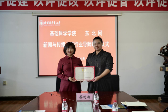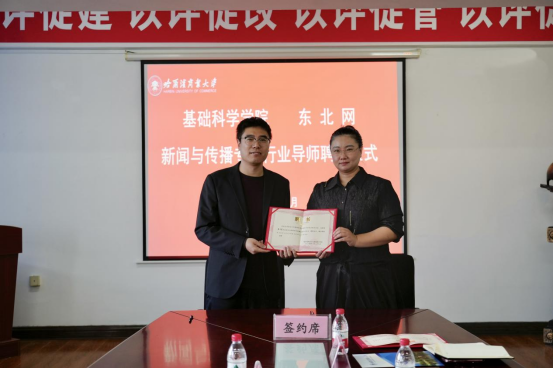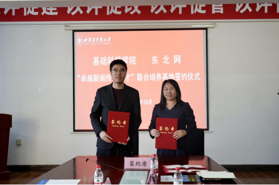 为进一步提升人才培养质量,促进优质教育资源共享,10月28日下午,基础科学学院与东北网举行“卓越新闻传播人才”联合培养基地签约仪式。东北网负责人王刚、制片人付巍、记者扬帆,基础科学学院党委书记许蕾、副院长焦艳会、新闻学教研室主任李楠、科研秘书王丽丽、教学秘书孙李红、新闻与传播专硕导师赵伟东以及新闻学专业教师代表参加活动。许蕾主持签约仪式。