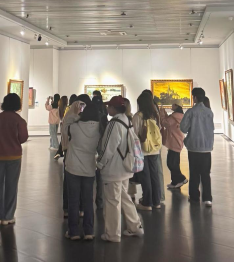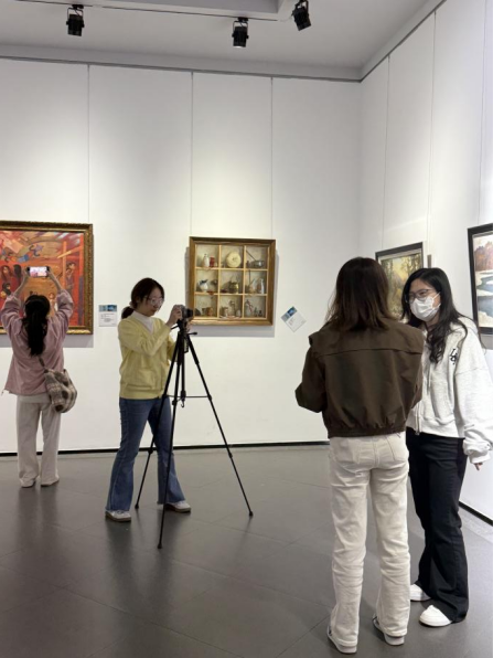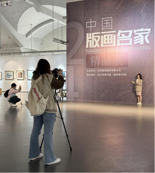 活动中,学生们通过镜头记录展品细节、访谈观展市民,将理论课中的采访技巧转化为实地操作。从俄罗斯油画的跨文化叙事到中国版画的本土表达,哈尔滨美术馆的展厅成为新闻学子观察社会、锤炼技能的实践课堂。