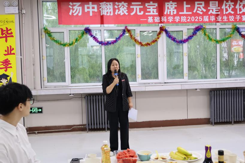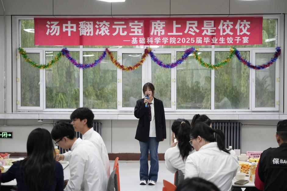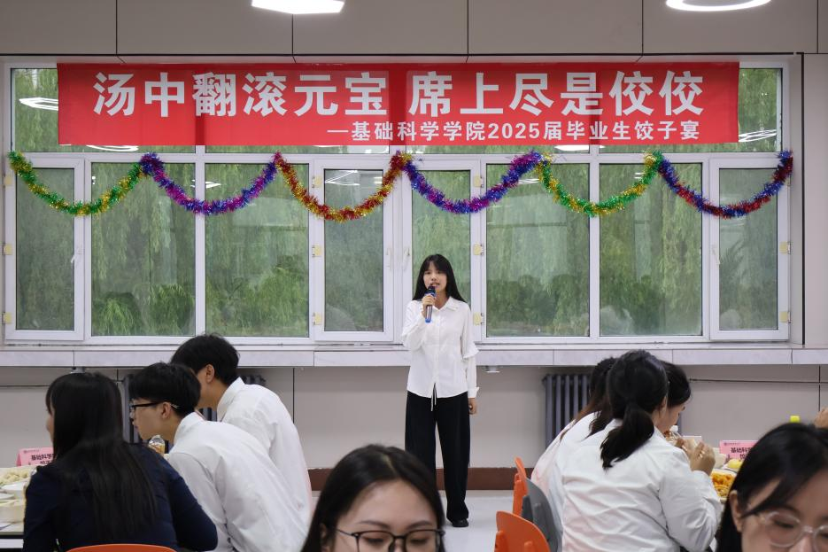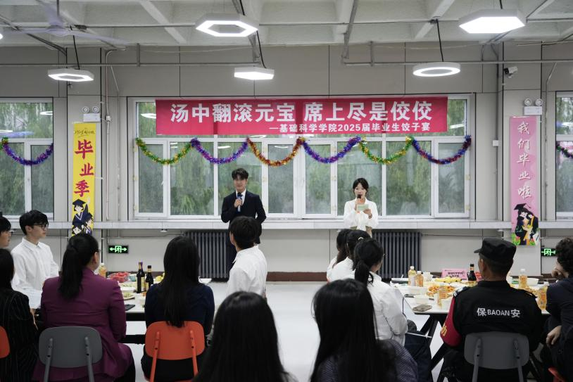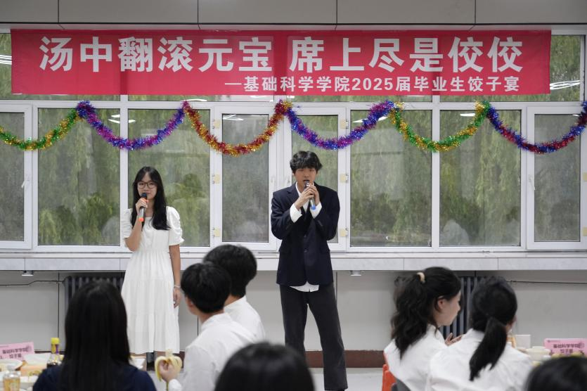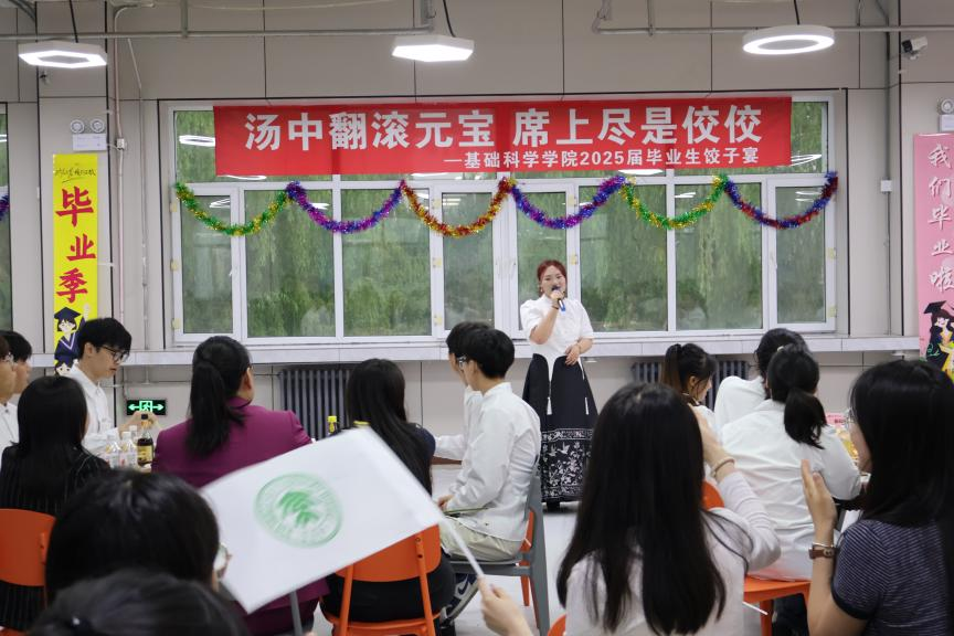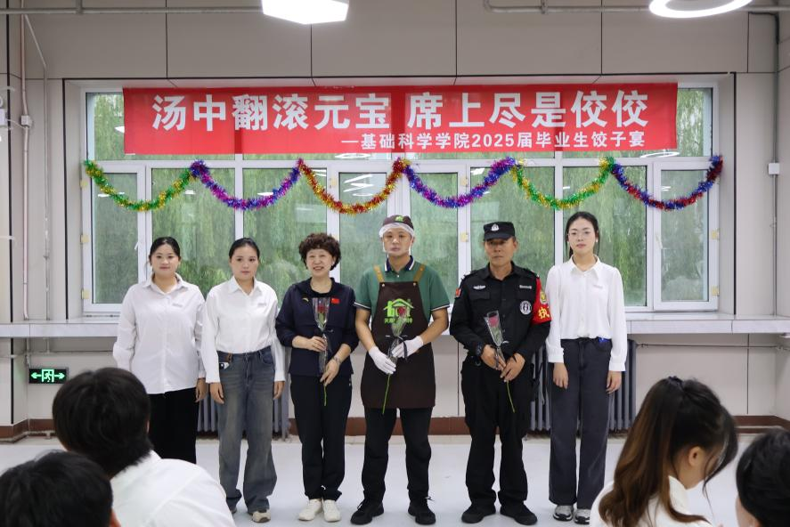 仲夏蝉鸣起,骊歌奏新章。为欢送即将踏上新征程的2025届毕业生们,6月10日,基础科学学院在B区学生食堂二楼举办“汤中翻滚元宝·席上尽是佼佼”毕业生饺子宴活动。学院2025届本硕毕业生,学院领导班子成员、各专业教师代表、各年级辅导员,学校后勤服务、安全保卫、舍务管理等部门工作人员代表欢聚一堂,共赴这场充满爱与祝福的毕业之约。
