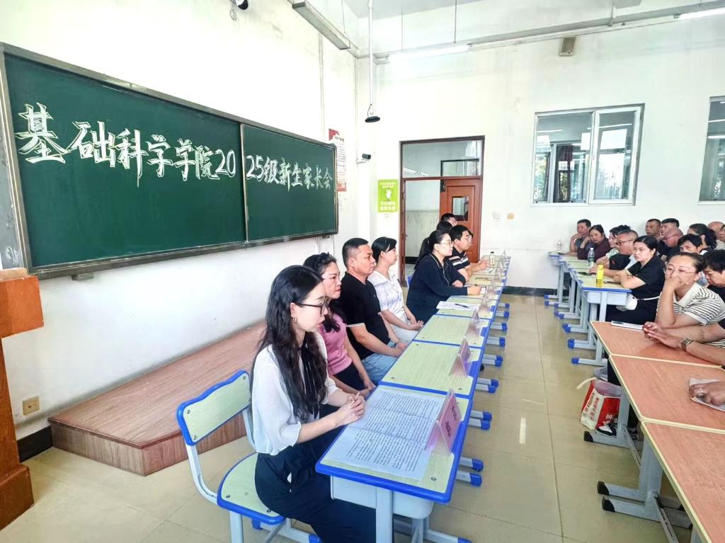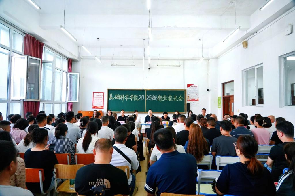 为进一步深化家校协同育人工作质效,8月30日下午,基础科学学院在A区主教学楼0107教室召开2025级本科生家长会。学院党委书记许蕾、新闻学专业教研室主任李楠、数学与应用数学专业教研室主任张敬信、行政秘书叶晓庆、科研秘书王丽丽、教学秘书孙李红、教学秘书盛洁和辅导员赵宇航、郭菲,以及170余名新生家长参加会议。许蕾主持会议。