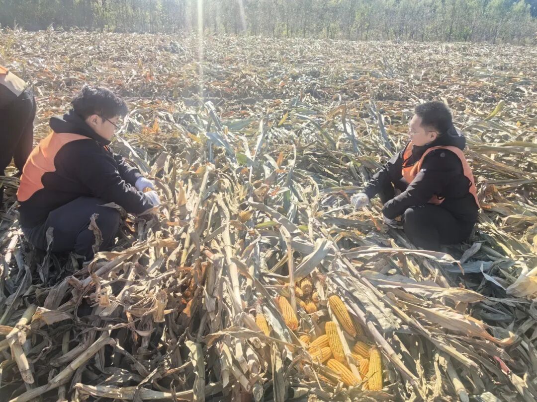 当满载着青春气息的大巴车驶入吕凤屯,映入眼帘的无边金色海洋和扑面而来的泥土芬芳,瞬间点燃了所有人的热情。在村民们的热心示范下,同学们很快掌握了掰玉米、堆秸秆的技巧,并自发组成了“生产小队”,分工协作,有人负责冲锋在前“开路”,有人负责后方运输,还有人细心地捡拾归拢散落的玉米。